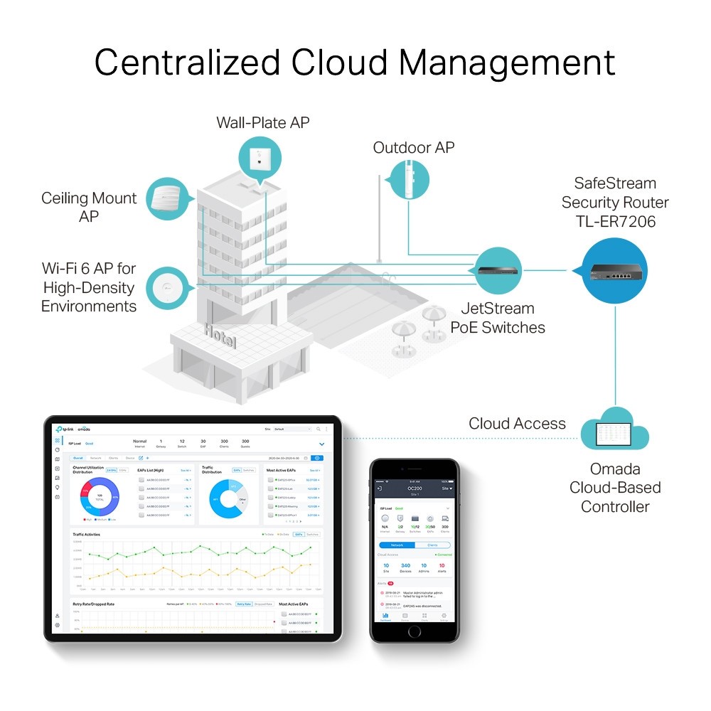 • Gestión Centralizada: Compatible con Omada SDN para una gestión sencilla y centralizada.