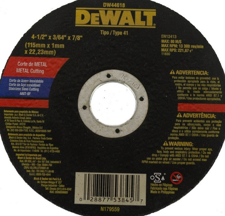 Disco corte metal Inox dewalt 4 1/2" DW44618